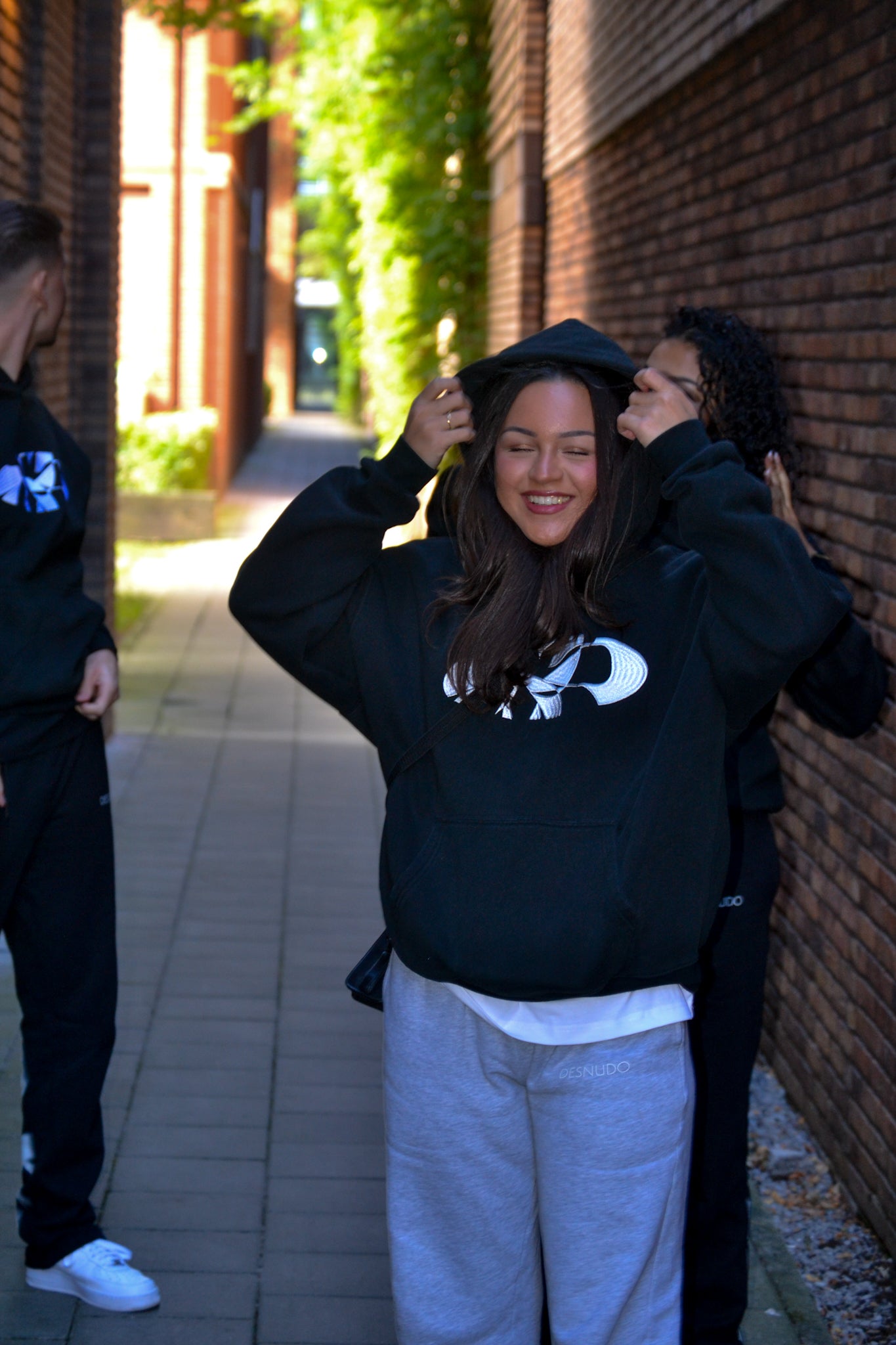 THE LOOSE DESNUDO HOODIE IS A LARGE FIT, THE SHOULDERS ARE DROPPED AND THE BODY LENGTH STOPS ON THE HIPS.IT FITS OVER SIZED.