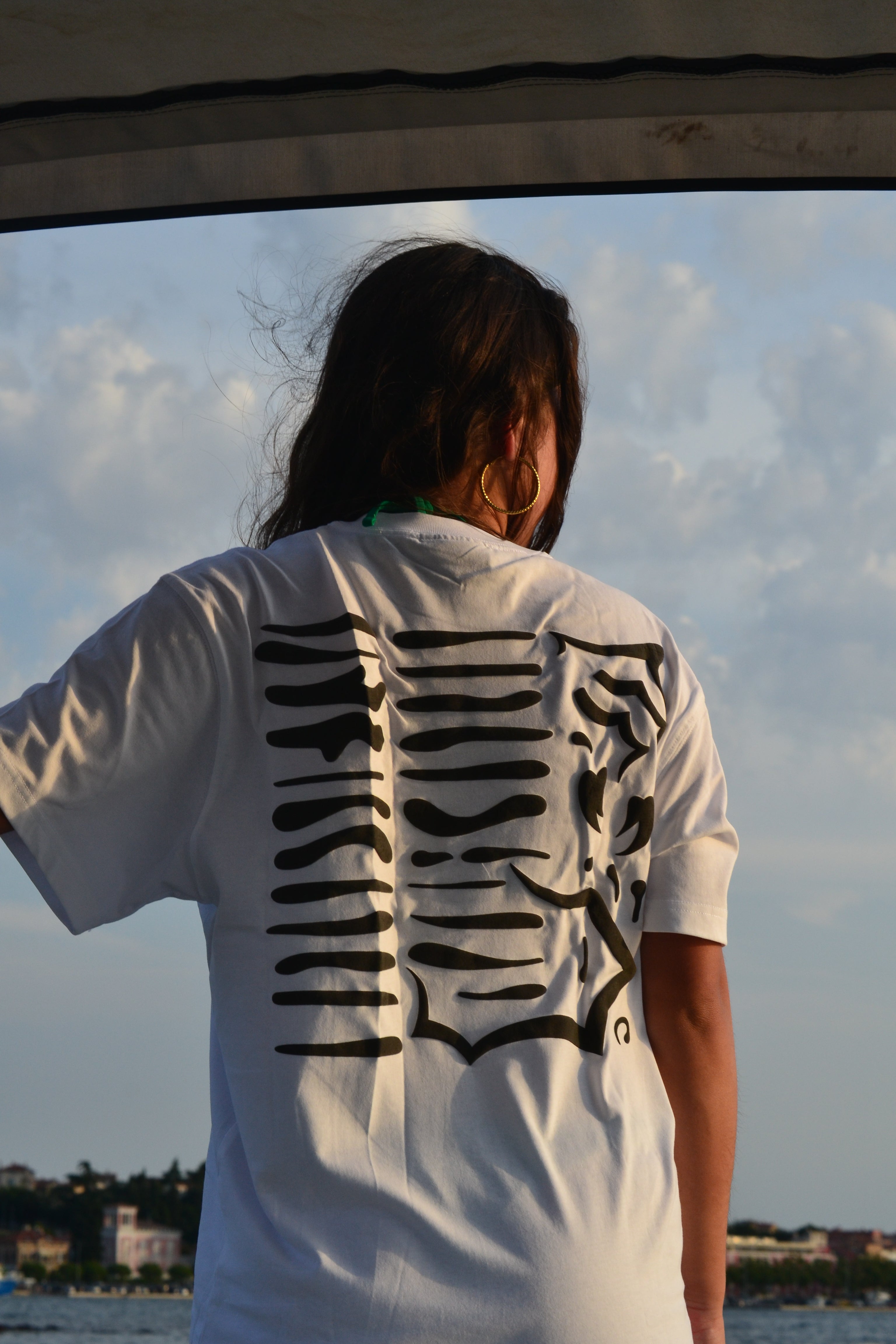 T-SHIRT IS A TRUE SIZE FIT, AND THE BODY LENGTH STOPS ON THE HIPS.